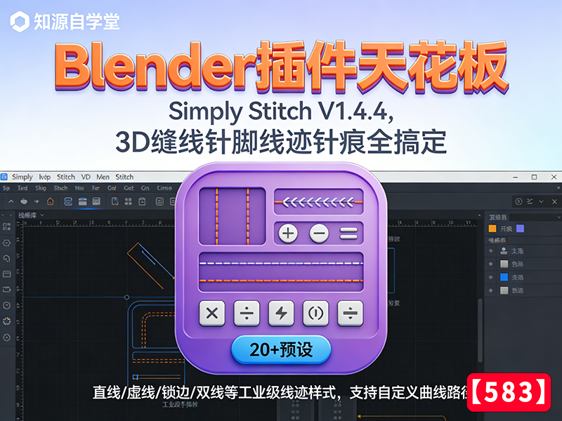 Blender插件天花板!Simply Stitch V1.4.4,3D缝线针脚线迹针痕全搞定【583】