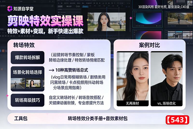 剪映特效速成班:特效课程 + 全套素材,教程素材全附赠【425】