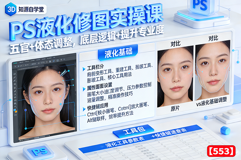 PS液化修图实操课!五官+体态调整,底层逻辑+提升专业度【553】