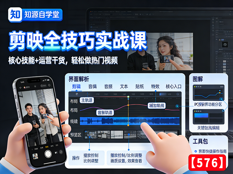 剪映全技巧实战课!核心技能+运营干货,轻松做热门视频【576】