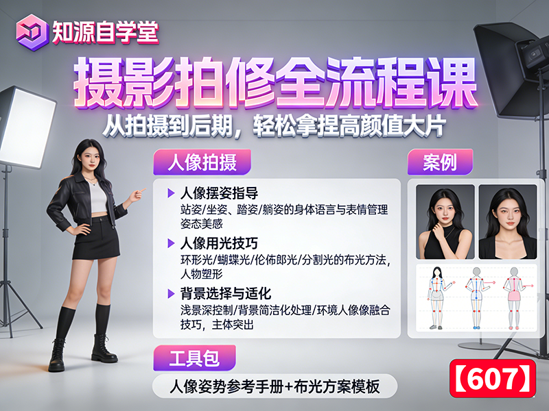 摄影拍修全流程课!从拍摄到后期,轻松拿捏高颜值大片【607】