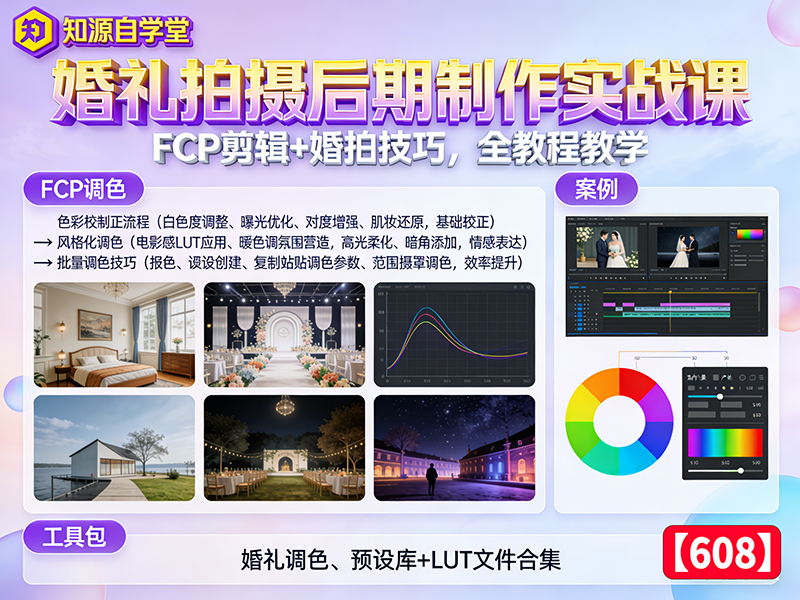 婚礼拍摄后期制作实战课!FCP剪辑+婚拍技巧,全教程教学【608】