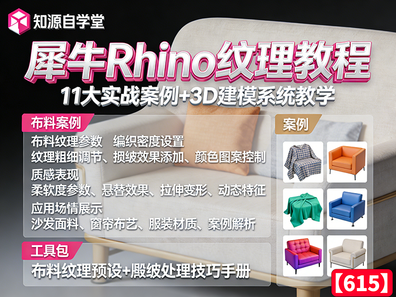 犀牛Rhino纹理教程!11大实战案例+3D建模系统教学【615】