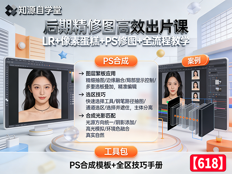 后期精修图高效出片课!LR+像素蛋糕+PS修图+全流程教学【618】