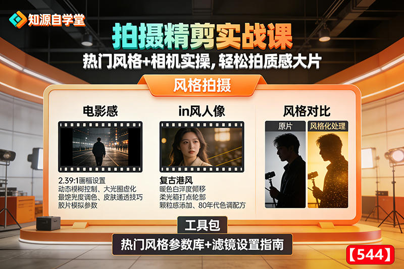 拍摄精剪实战课!热门风格+相机实操,轻松拍质感大片【544】