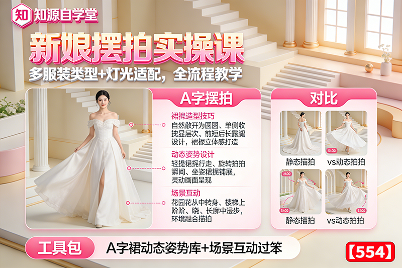 新娘摆拍实操课!多服装类型+灯光适配,全流程教学【554】