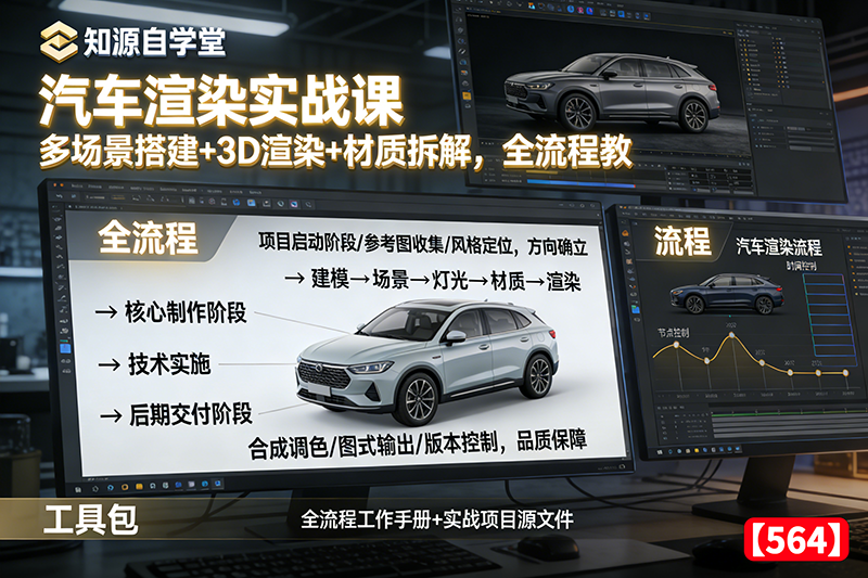 汽车渲染实战课!多场景搭建+3D渲染+材质拆解,全流程教【564】