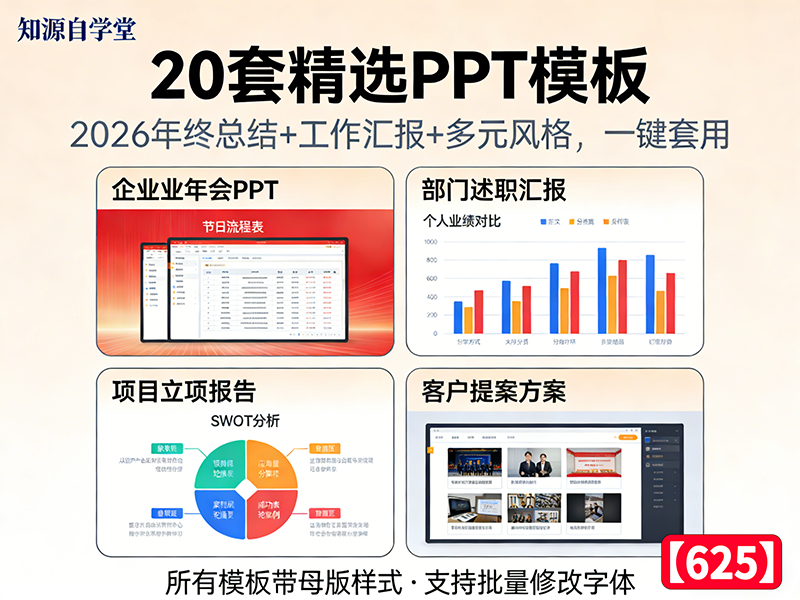 20套精选PPT模板,2026年终总结+工作汇报+多元风格,一键套用【625】