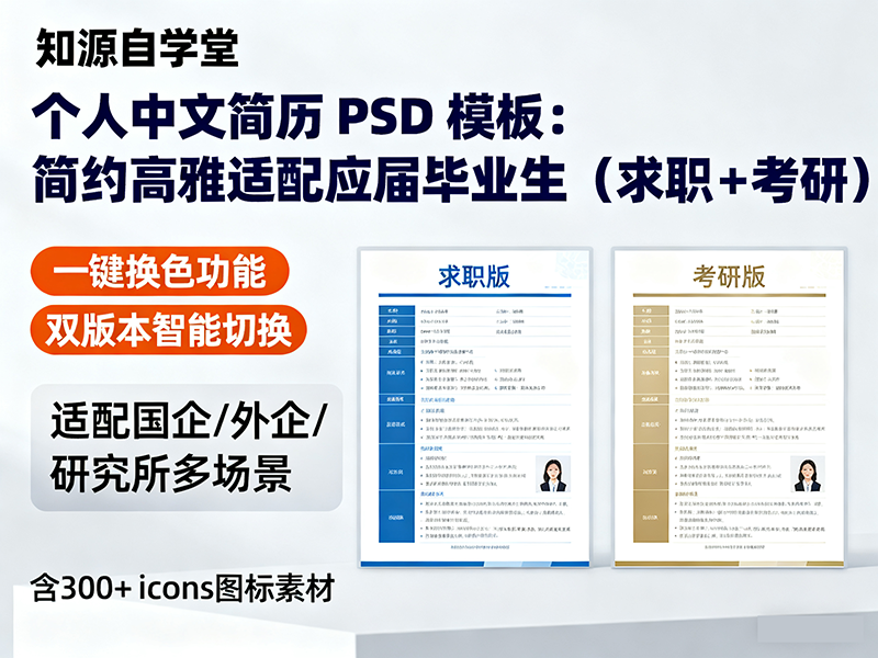 个人求职考研中文简历模板psd简约高雅适合应届毕业学生