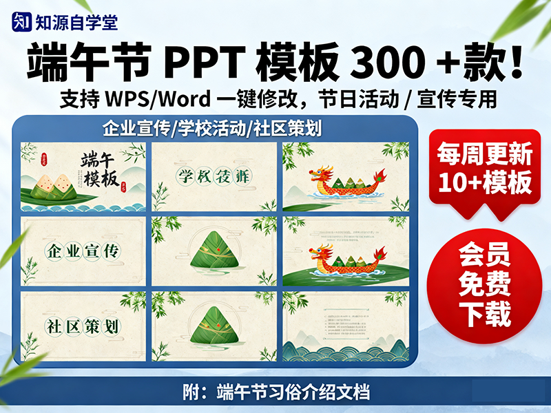 【300+】端午节PPT模版!支持WPS和word一键修改!