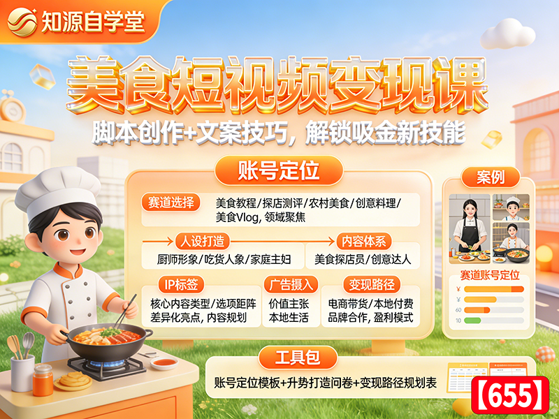 美食短视频变现课!脚本创作+文案技巧,解锁吸金新技能【655】